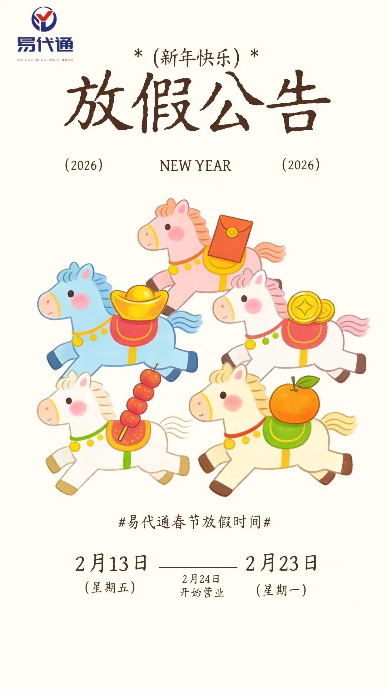 2月13日至2月23日放假,共11天假期; 2月24日(星期二)正常上班。